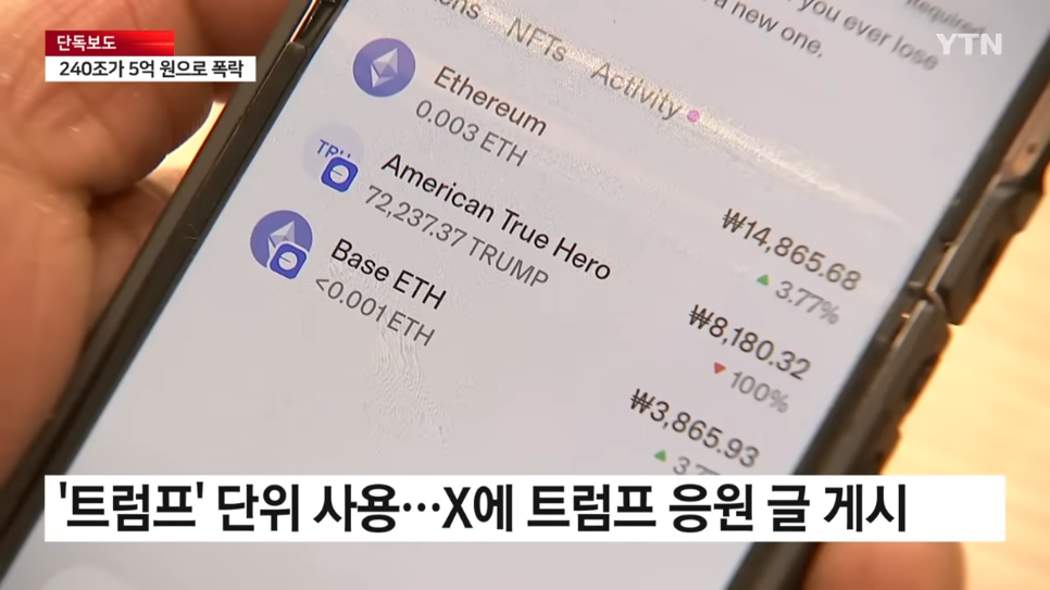 YTN - [단독] 트럼프발 코인 열풍.시총 200조가 몇 분 만에 5억으로 YTN [ycooh1-Ux0U - 966x543 - 2m10s].png [단독] 코인, 시총 200조가 몇 분 만에 5억됐다