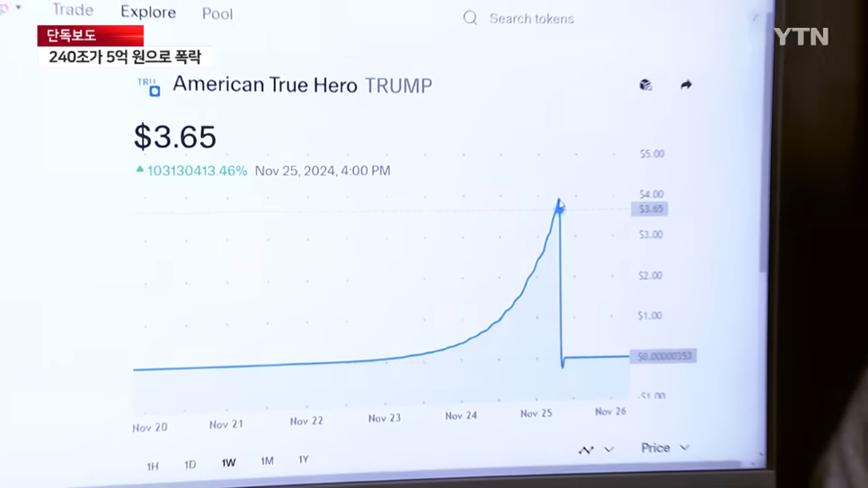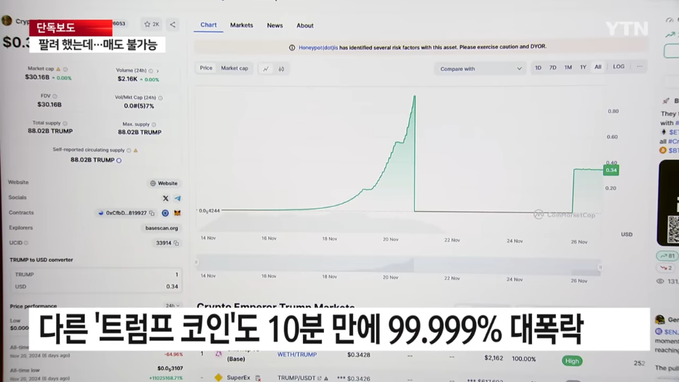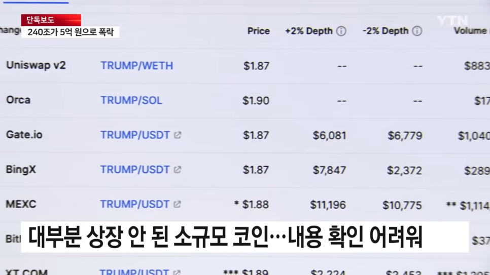 YTN - [단독] 트럼프발 코인 열풍.시총 200조가 몇 분 만에 5억으로 YTN [ycooh1-Ux0U - 966x543 - 1m01s].png [단독] 코인, 시총 200조가 몇 분 만에 5억됐다