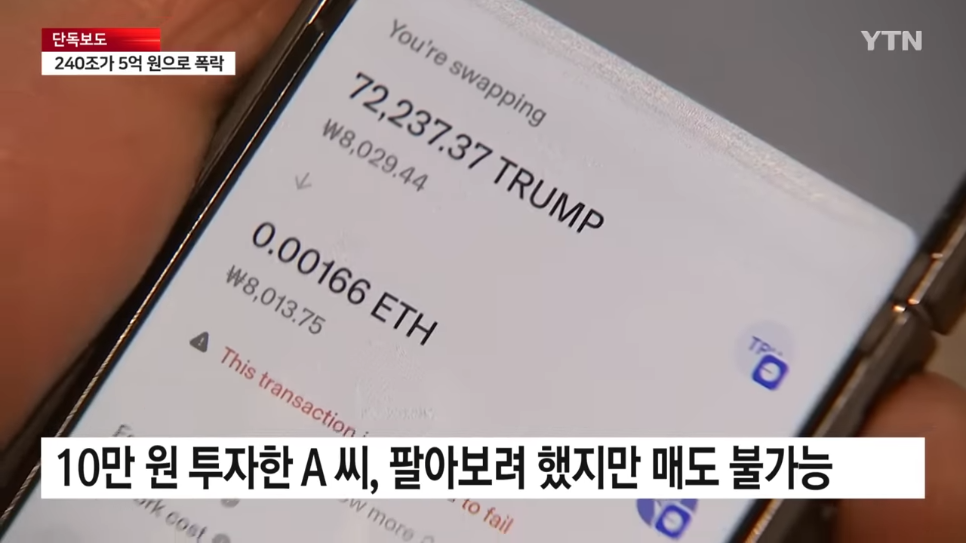 YTN - [단독] 트럼프발 코인 열풍.시총 200조가 몇 분 만에 5억으로 YTN [ycooh1-Ux0U - 966x543 - 2m10s].png [단독] 코인, 시총 200조가 몇 분 만에 5억됐다