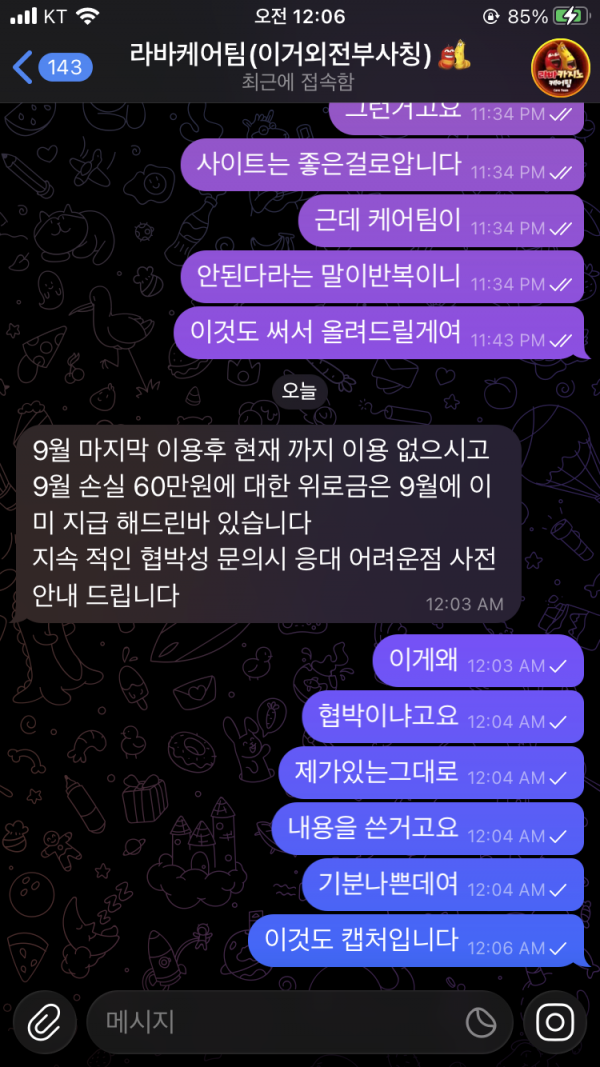 아니 여기도 나루토카지노랑 별반차이없습니다 왜 똑같은 계열사를 쓰는지 이해가안가지만 참 여기도 케어팀 응대 말투가 제가 협박하고있다고 하네여 어처구니없어서  케어팀이있는데는 스피드벳이 ㄱㅊ으니 거기이용하세여 여기는 응대 별로입니다 말바꾸는게 특기라서