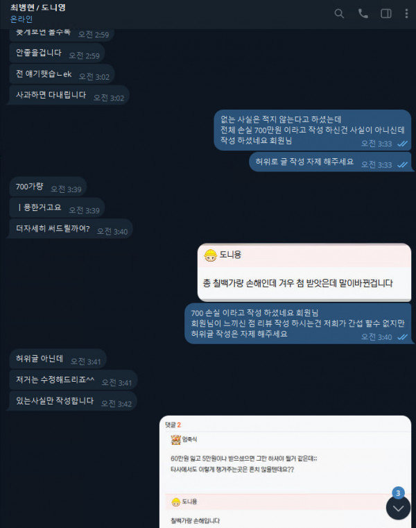 해당 회원님이 말씀 하시는 전체 손실 700만원은 터무니 없는 허위 글 입니다
