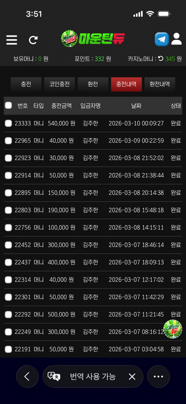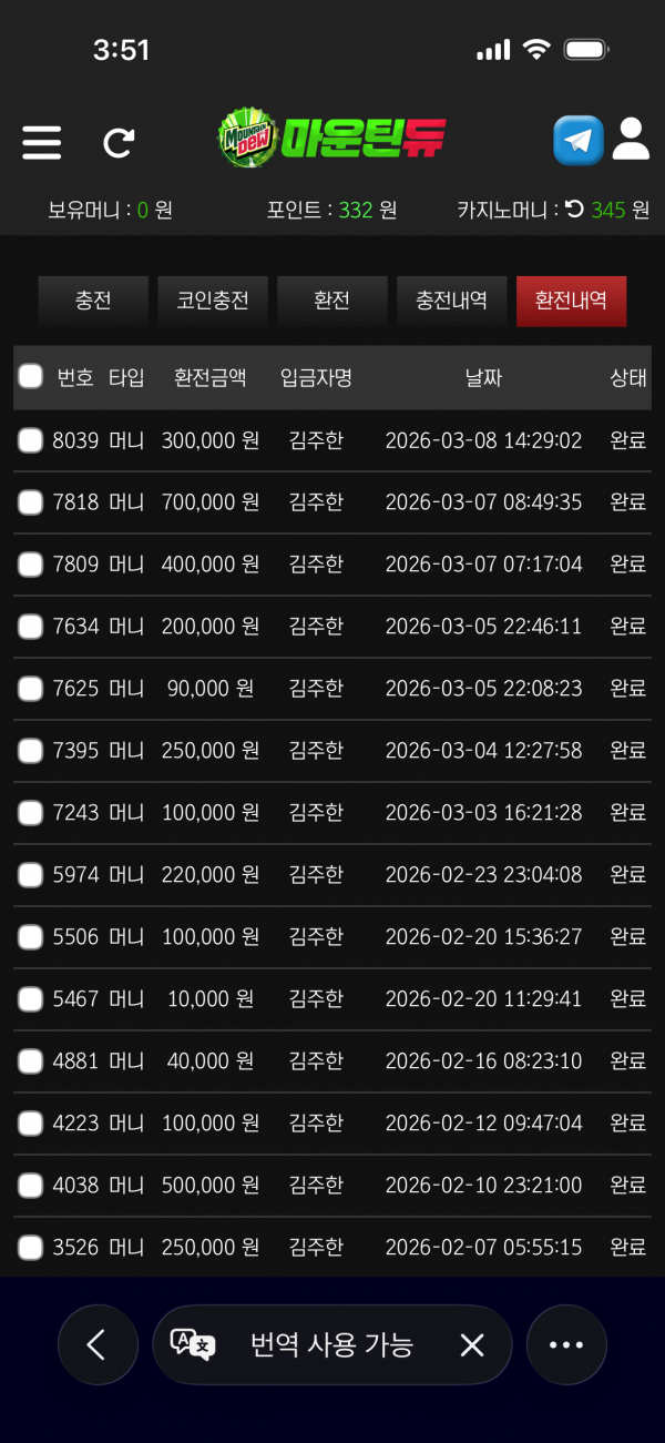 입금 환전방식 심플하고 서버오류 일절없네요