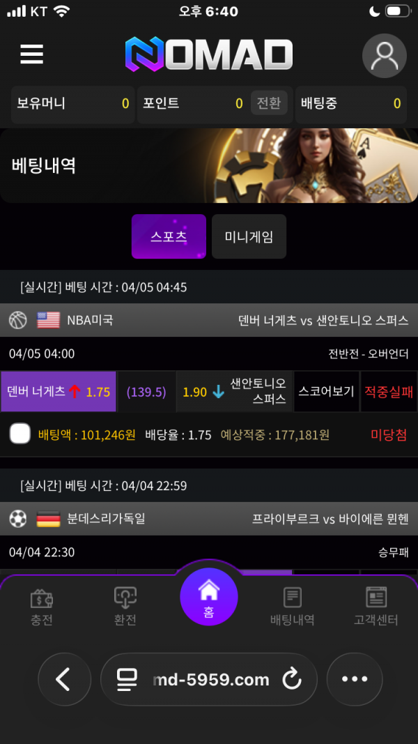 노마드 이벤트 많고 고객센터 응답 정말 빠르고 출환빨라요 이용하기 정말 편합니다 먹튀없는 사이트 좋습니다